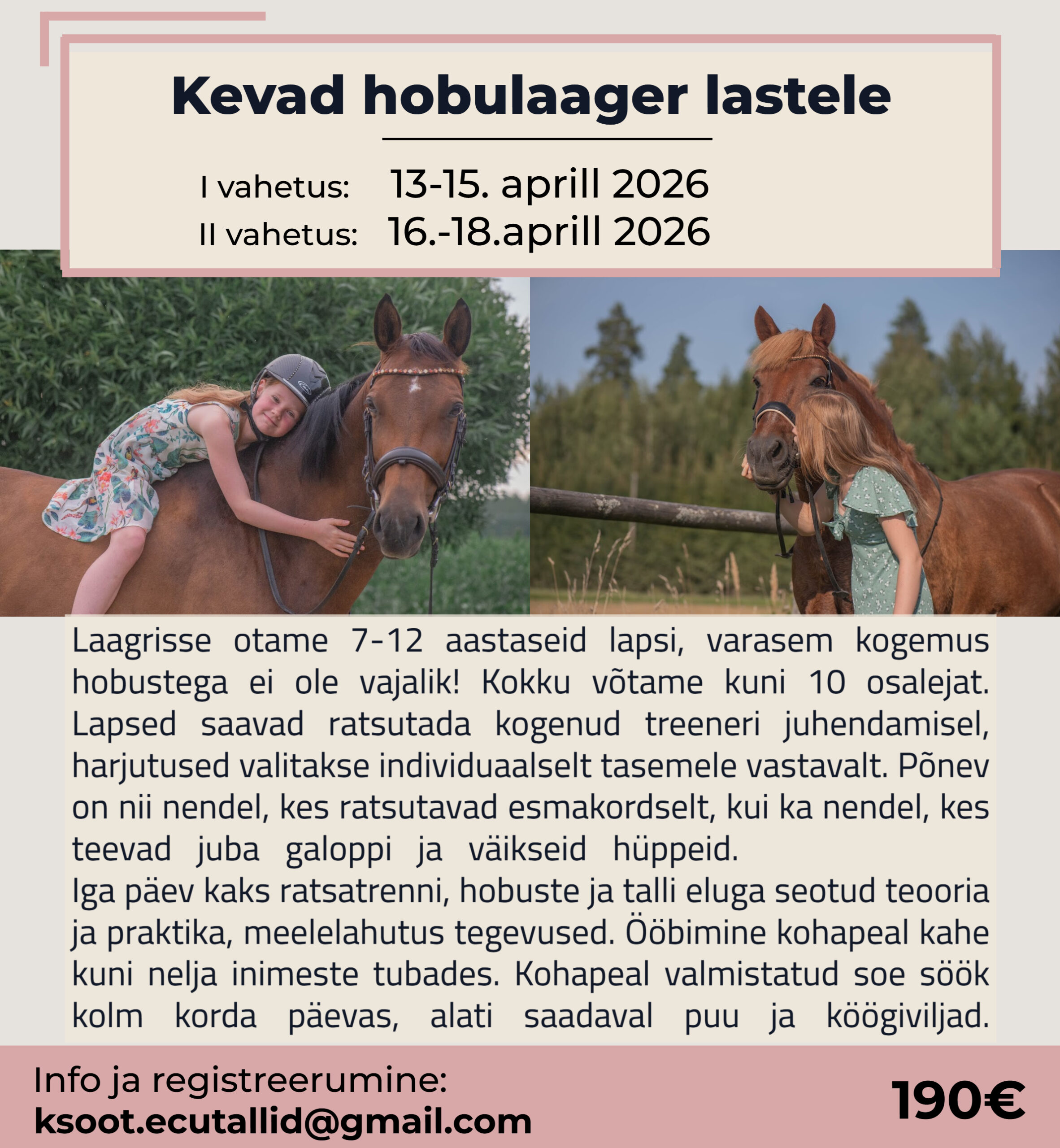 13.-15. aprill 2026 – Kevad hobulaager lastele I vahetus, 190€