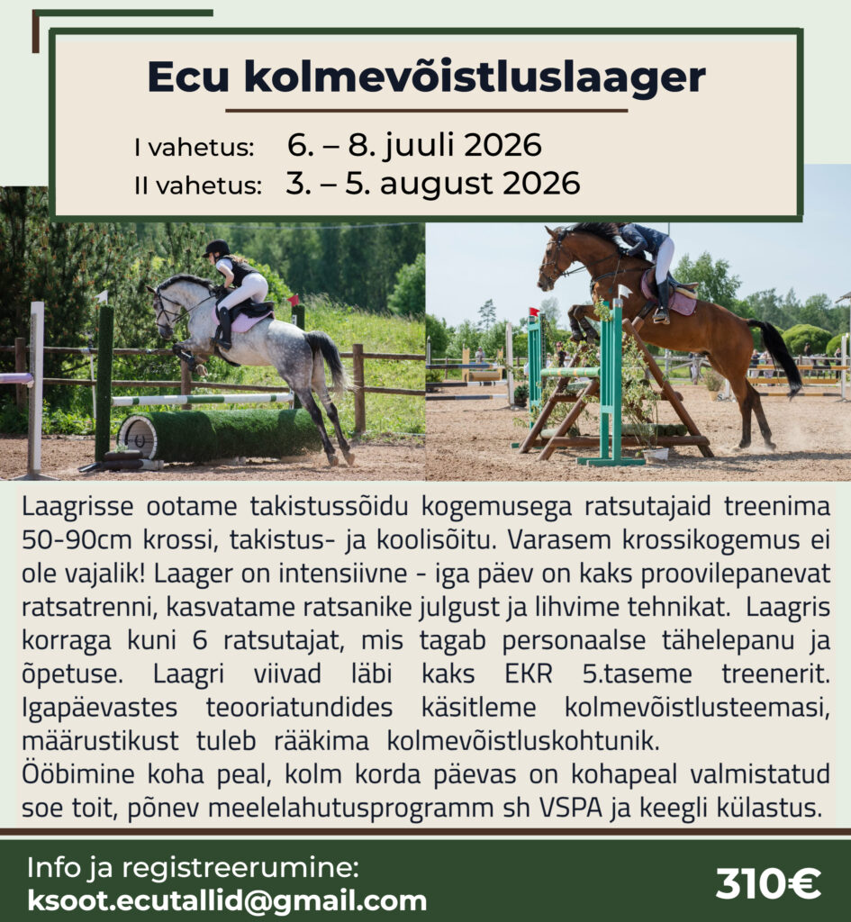 6. juuli – 8. juuli 2026 – Ecu kolmevõistluslaager I vahetus, 310€